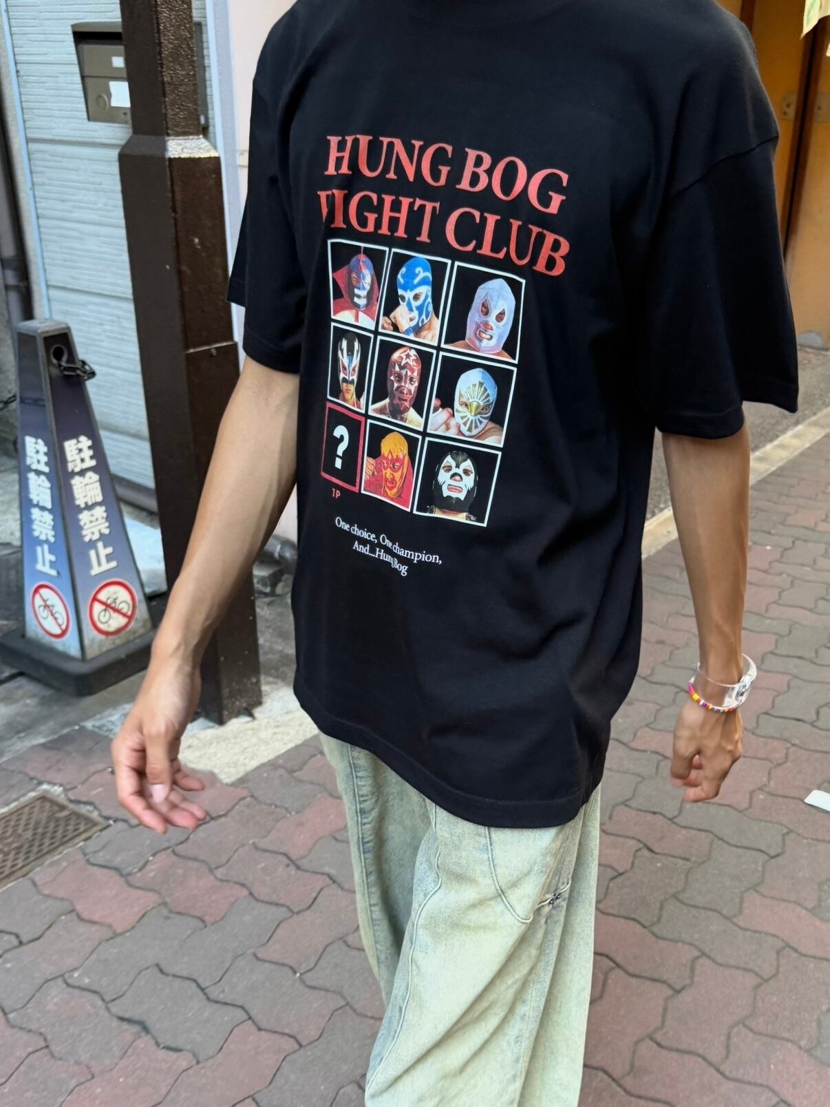 架空の格闘大会「Hung Bog Fight Club」のファンアイテムとして販売されているTシャツです。