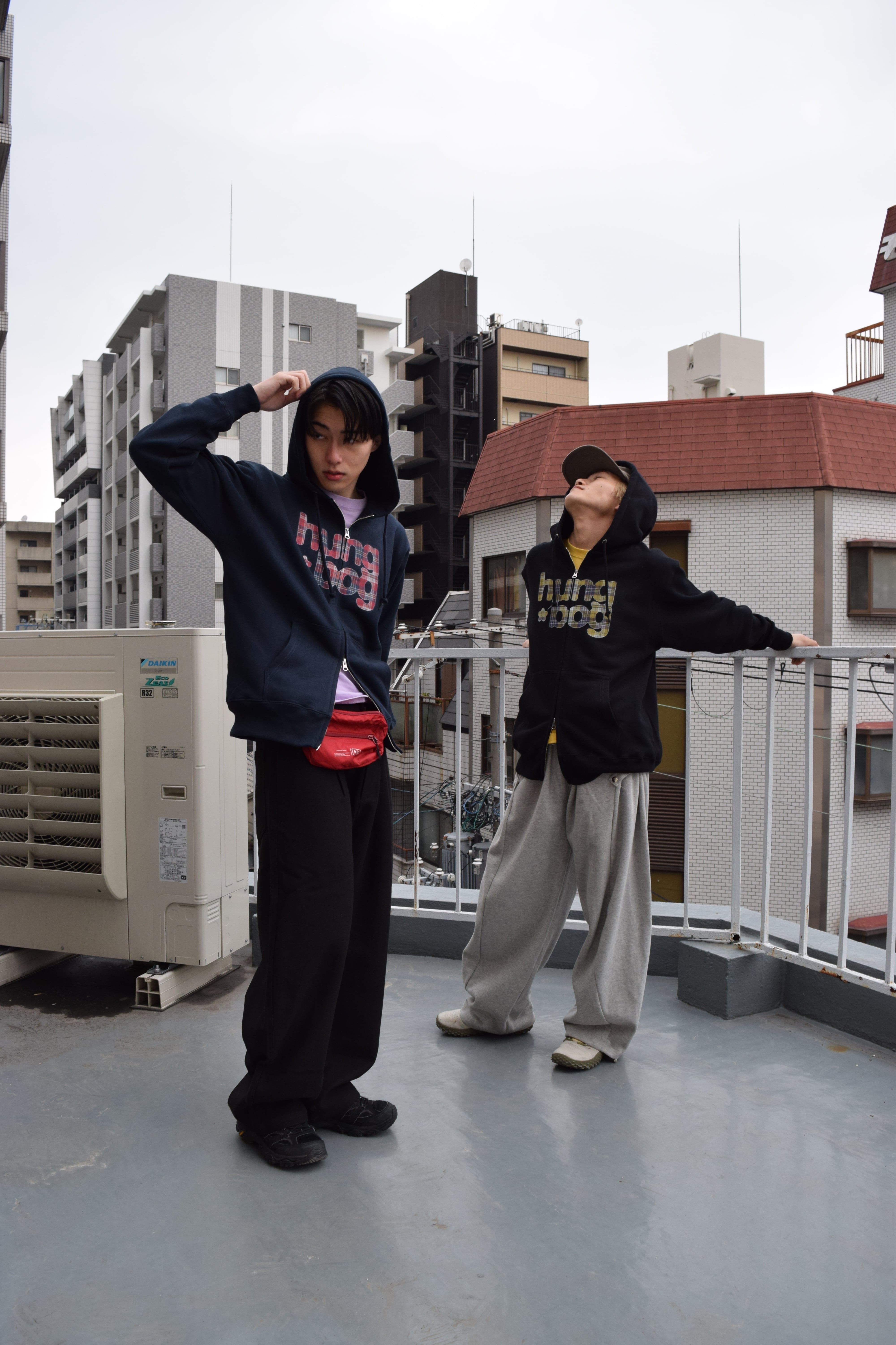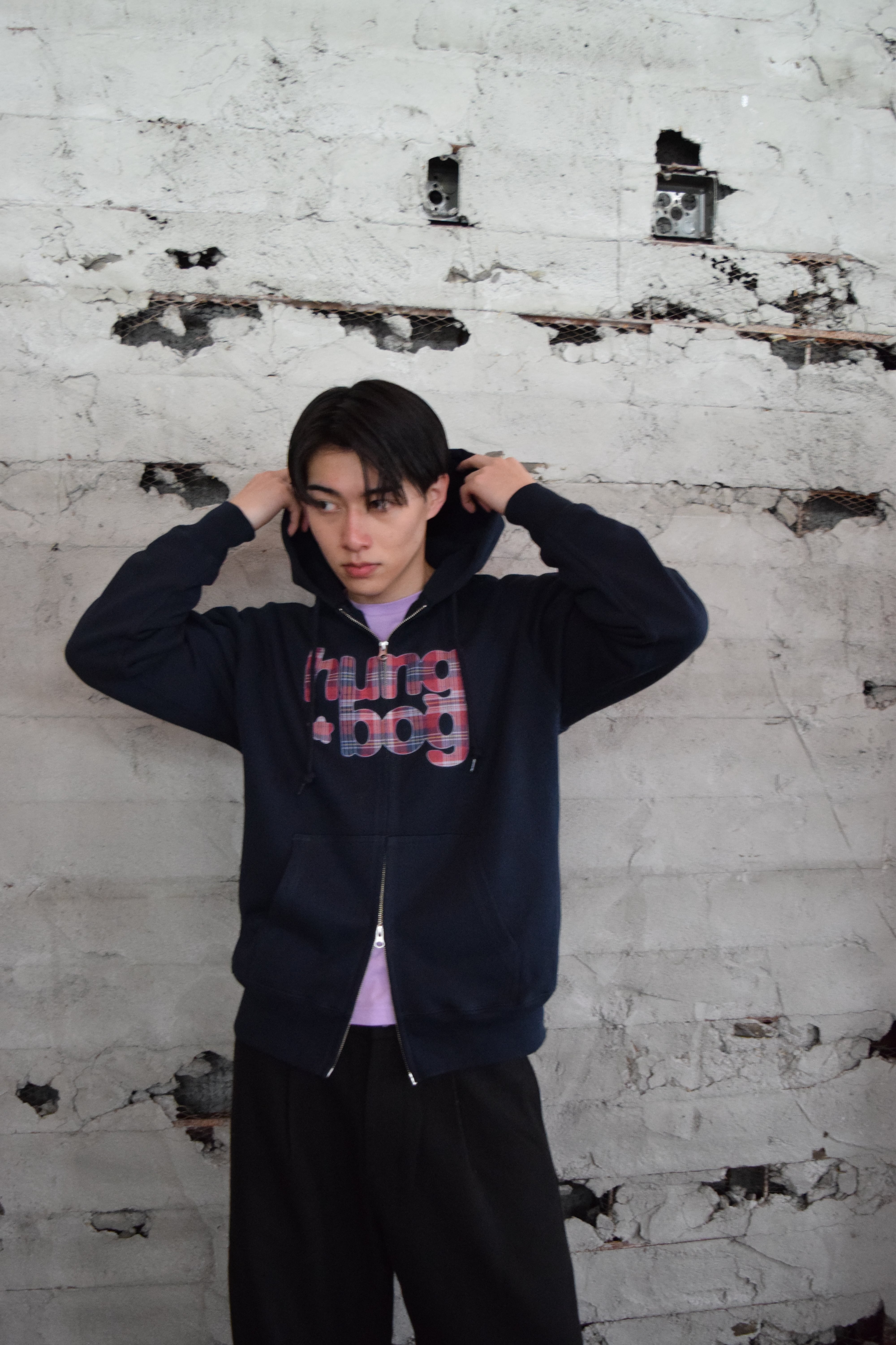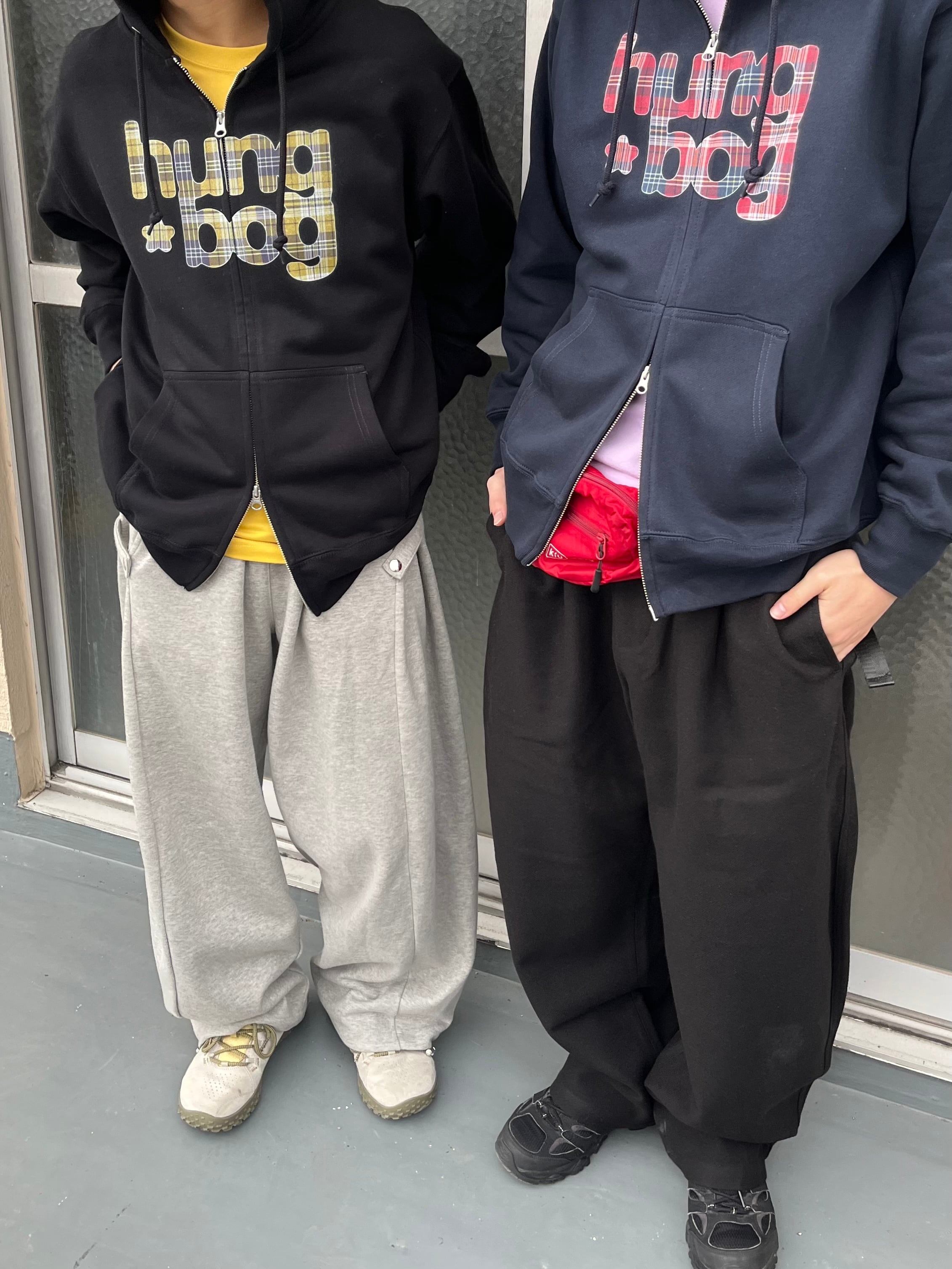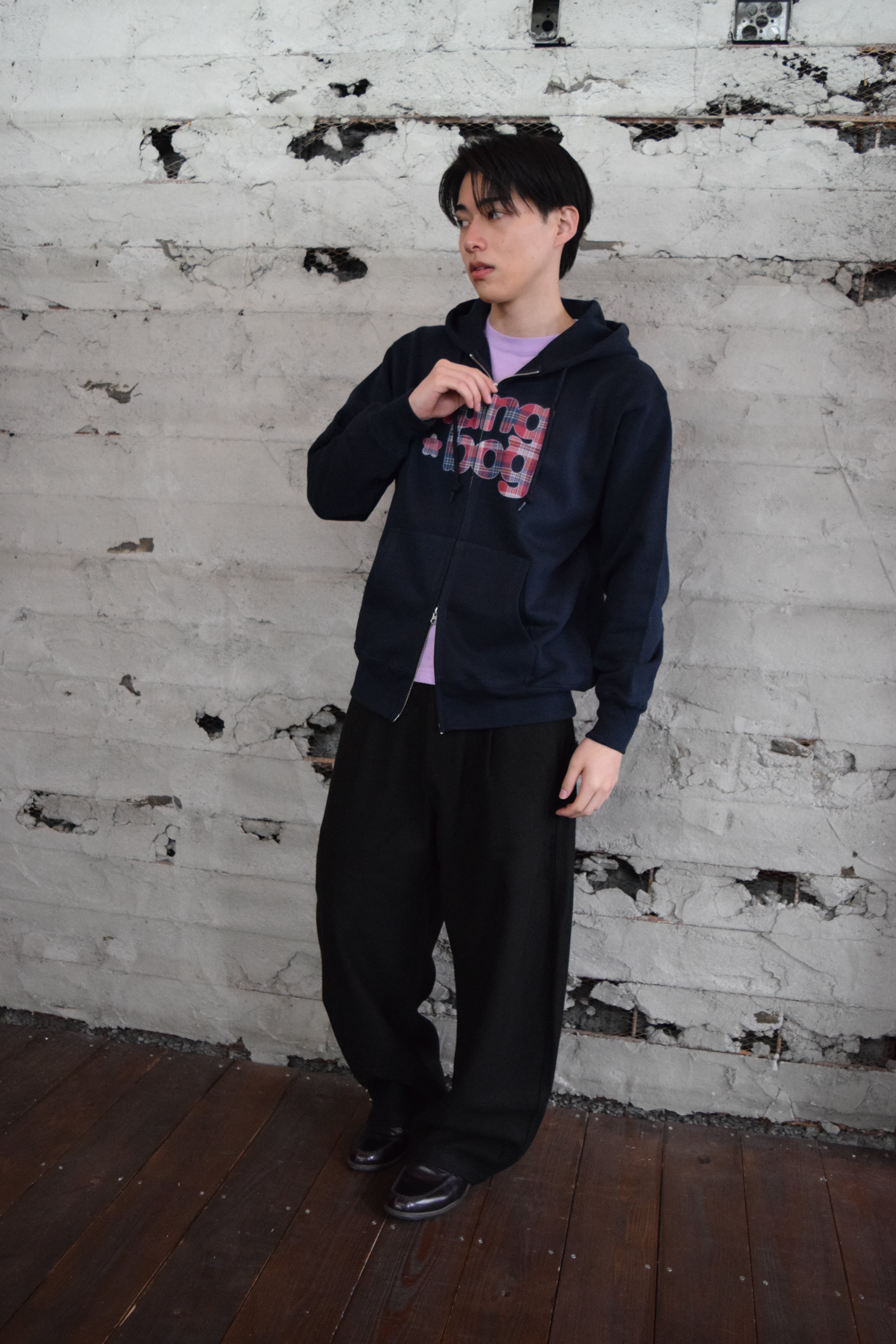 ダブルジップで遊べるフーディ。
