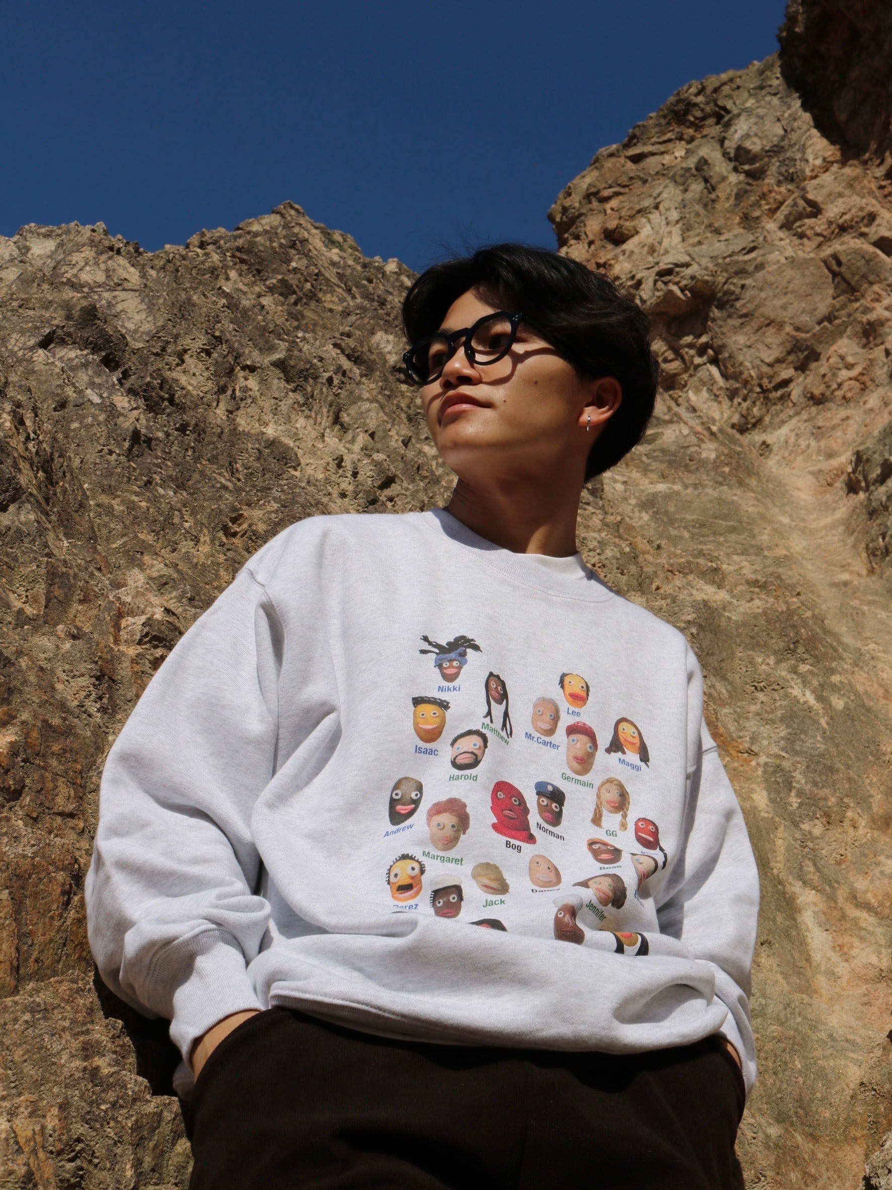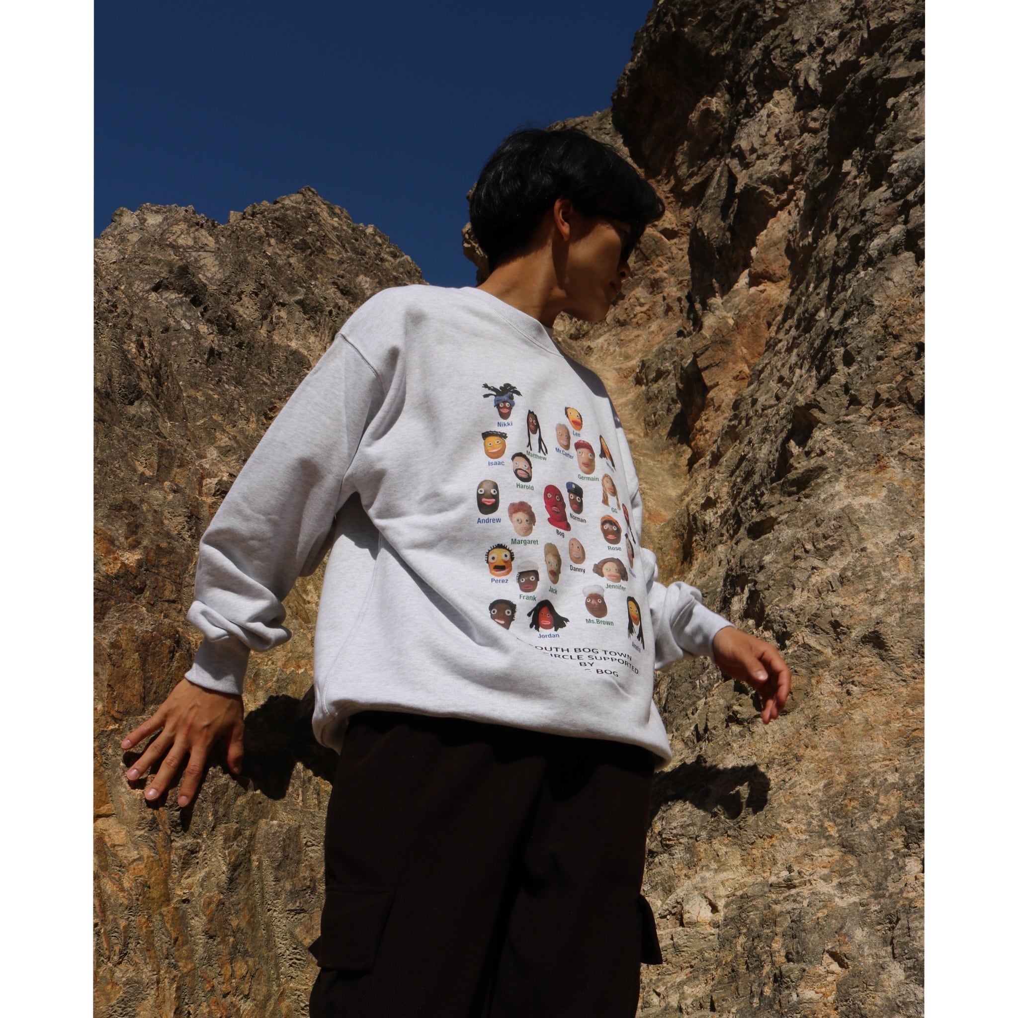 今作のコンセプトは、架空の町(サウスボグタウン)のダイエットサークルが1984年に行った合宿用スウェットです。フロントには粘土で作ったメンバーの顔と名前がプリントされています。